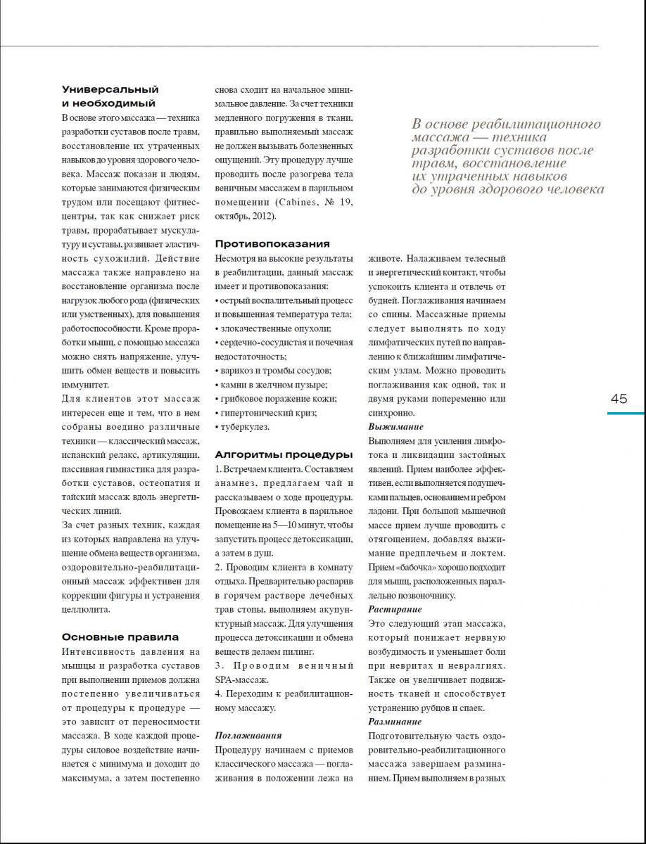 В элитных SPA-технологиях особое место занимает оздоровительно-реабилитационный массаж, который можно включить в пакет любого оздоровительного комплекса. Эта процедура направлена как на оздоровление и профилактику, так и на восстановление